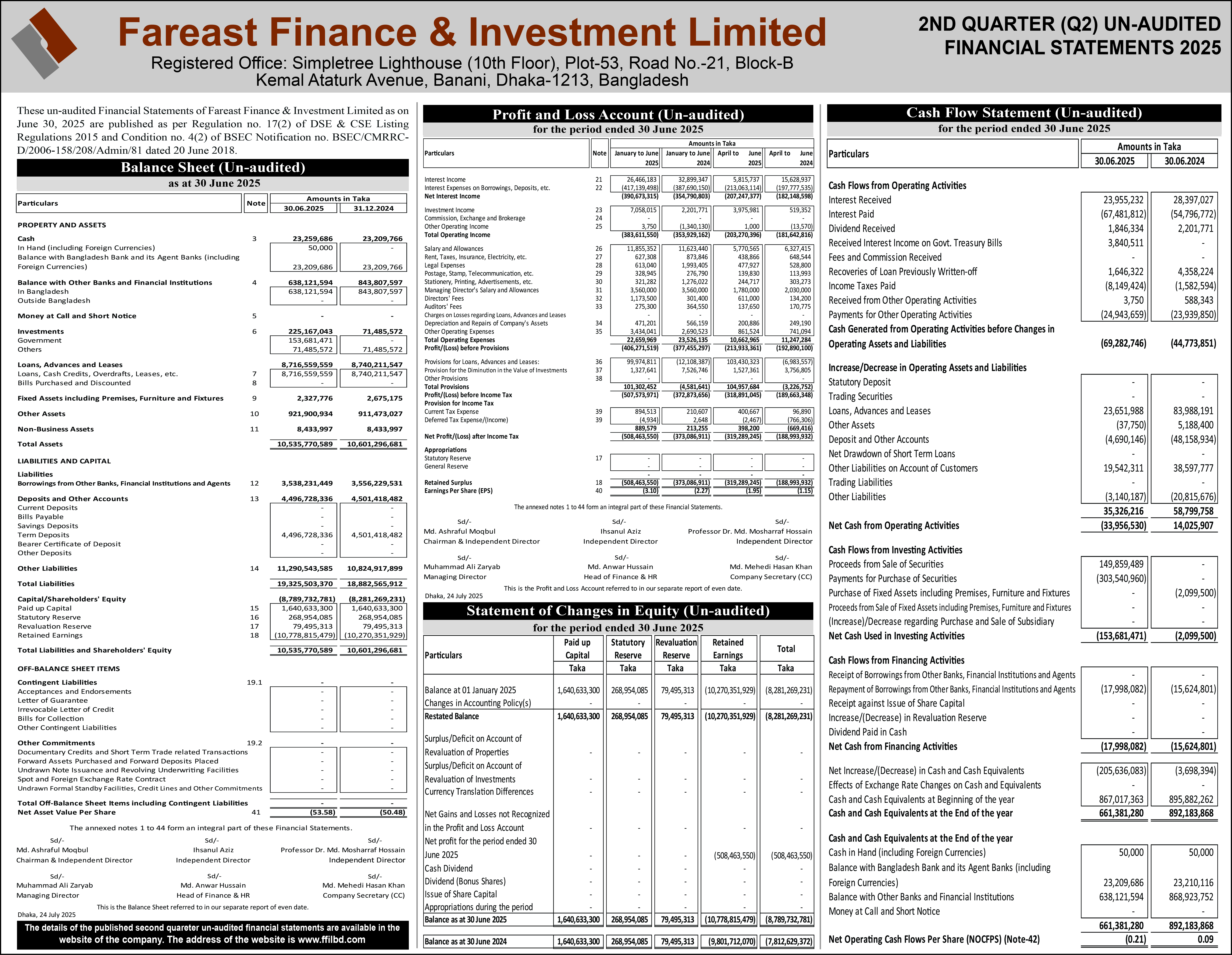 Un-audited financial statements upto 2nd quarter ended on 30 June 2025 |